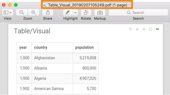 CDP Data Visualization enables you to save a screenshot of a visual as a PDF file.