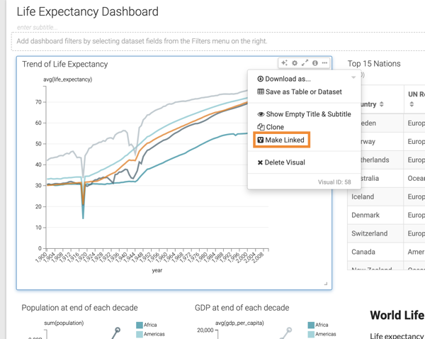 For instructions on how to add a linked visual to a dashboard, see Adding visuals to a sheet.