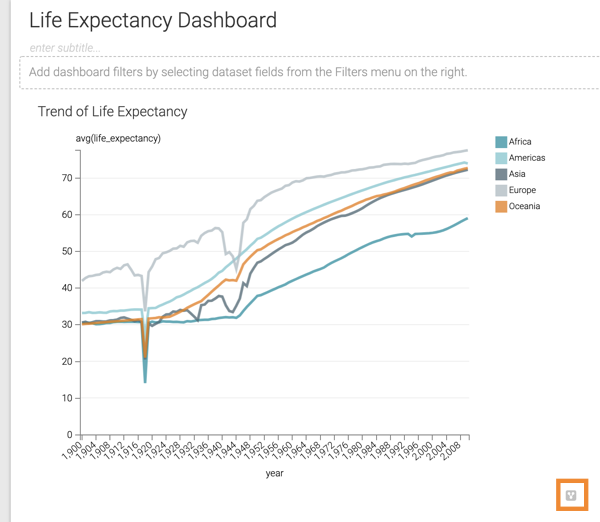 The visual can now be used in other dashboards. You can see a small icon in the lower right corner of the visual showing the linked designation.