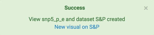 A success confirmation modal appears, with a link to the new default visual on the new dataset.