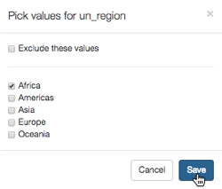 In the Pick values for un_region modal window, select