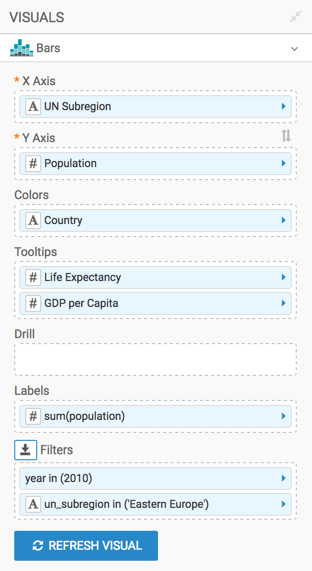 This example uses the visual previously created in Stacked bars. Clone it and make the changes to the duplicate visual.