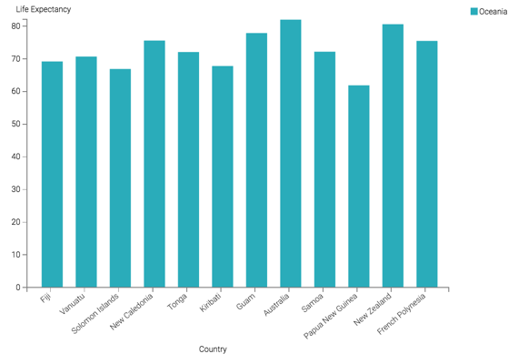 To use this visual to see a bar chart for a region, such as Oceania, follow these steps: