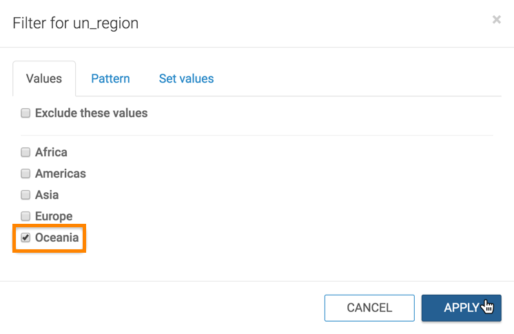 When working with a very large set of data, it is necessary to quickly access and examine a specific subset of information. CDP Data Visualization gives you the ability to filter information on all fields of the dataset.