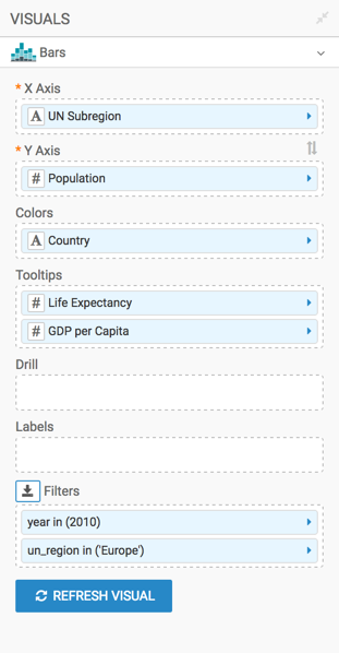 This example uses the visual previously created in Bars. Clone it and make the changes to the duplicate visual.