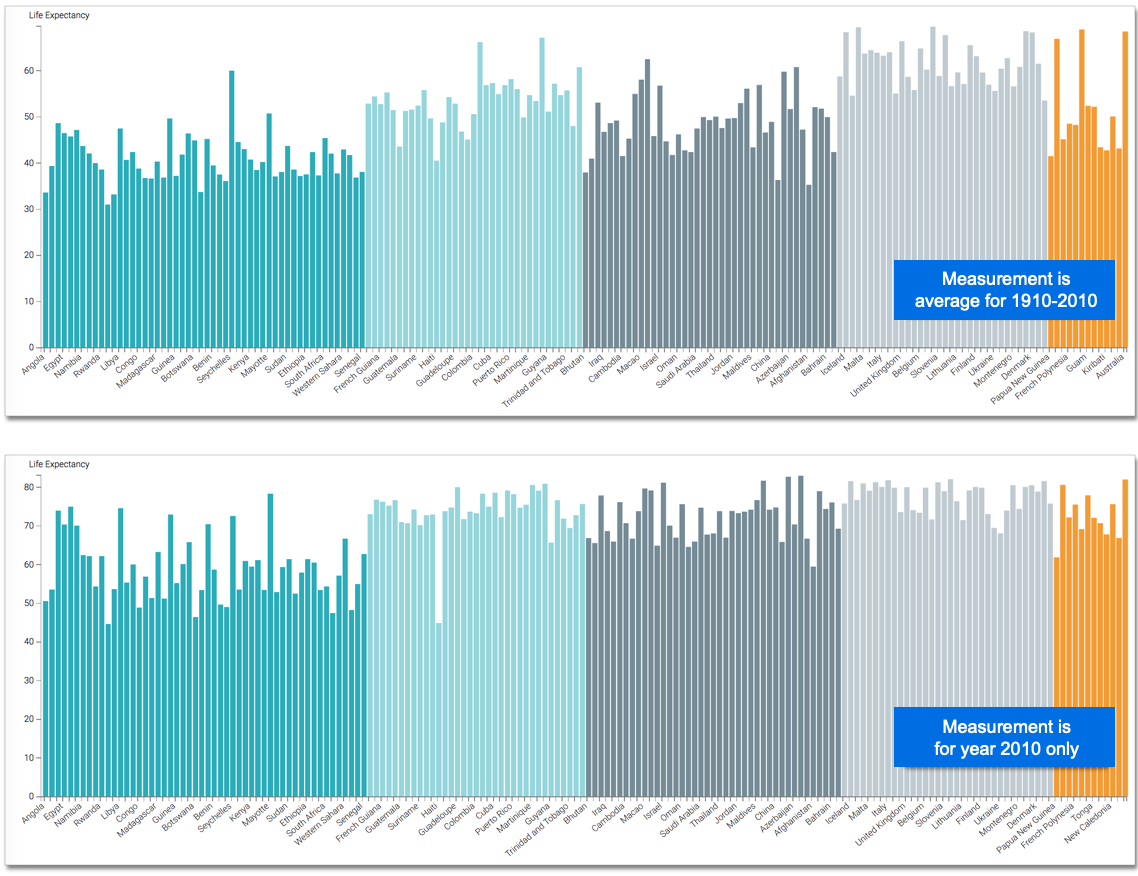 To use this visual to see the bar chart for a specific year, such as 2010, follow these steps: