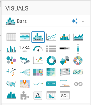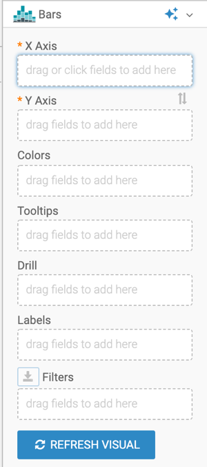 For more information, see Adding data and Creating datasets. For an overview of shelves that specify this visual, see Shelves for bars visuals.