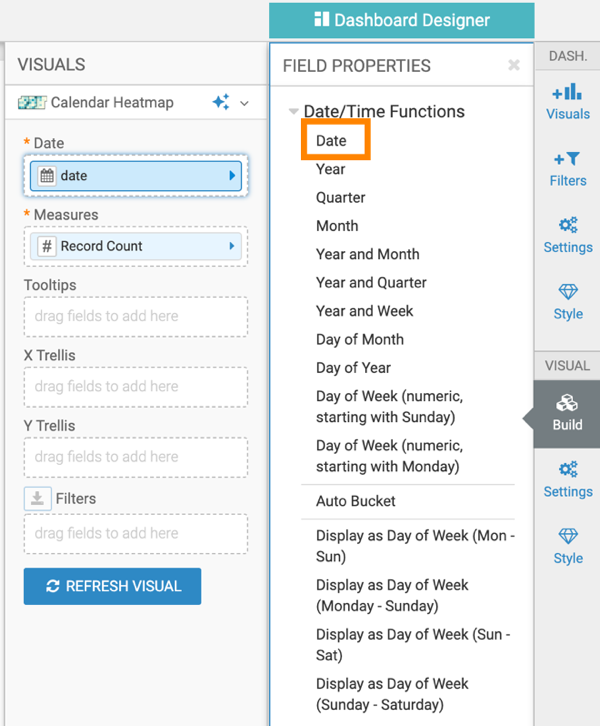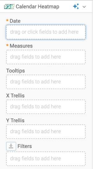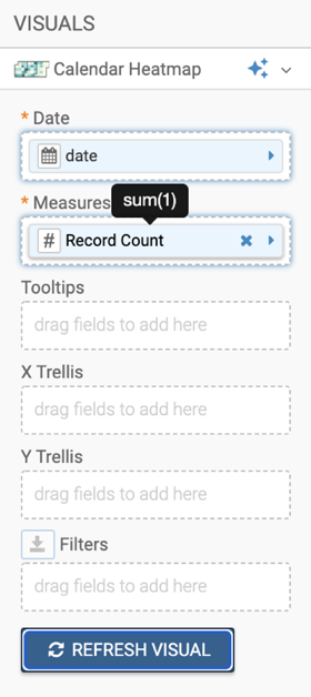 For an overview of shelves that specify this visual, see Shelves for calendar heat maps.
