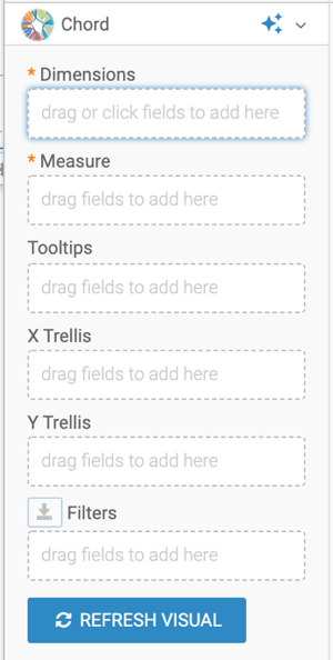 For an overview of shelves that specify this visual, see Shelves for chord visuals.