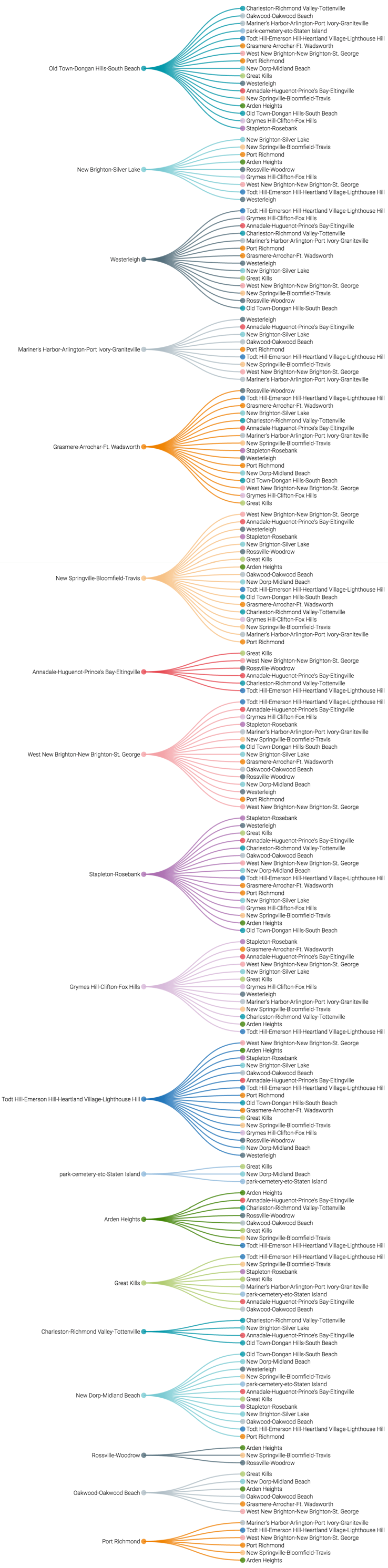 CDP Data Visualization enables you to create Dendrogram visuals. Dendrograms are good at expressing hierarchical relationships in data. As the name derivation suggests (Greek 'dendro' for 'tree' and 'gramma' for 'drawing'), dendrograms are tree diagrams.
