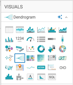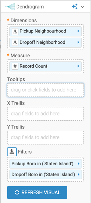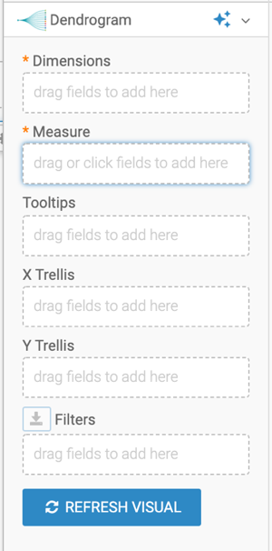 For an overview of shelves that specify this visual, see Shelves for dendogram visuals.