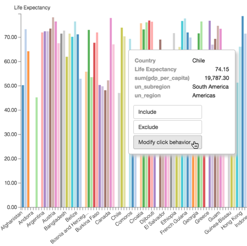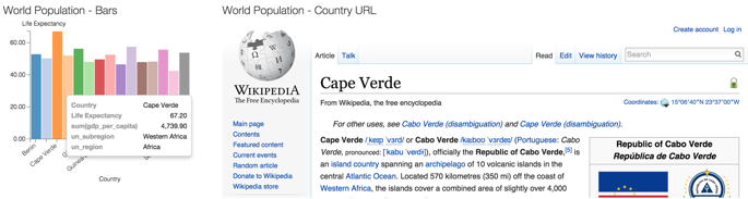 click on the specific bars that represent a country, the Wikipedia page changes to match
