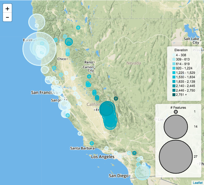 You can display two distinct measurements in the Circle Layer by placing the secondary measurement on the Colors shelf. The following steps extend the work completed in Interactive maps, and demonstrate how to visualize two separate measures on the same map.