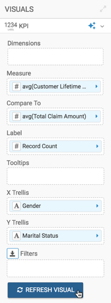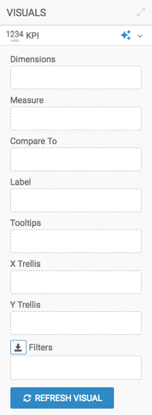 For information on customization options, see KPI settings. For an overview of shelves that specify this visual, see Shelves for KPI visuals.