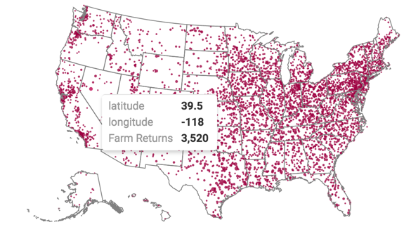 the Income Tax Returns dataset. It produces maps with bubble marks that correspond to