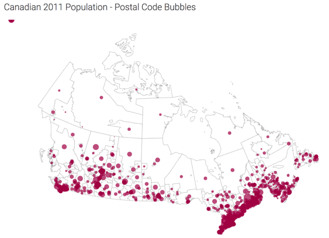 Canadian postal code map, bubbles