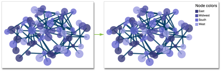 In this example, the node legend is added to the visual developed in Networks: node color shelves.