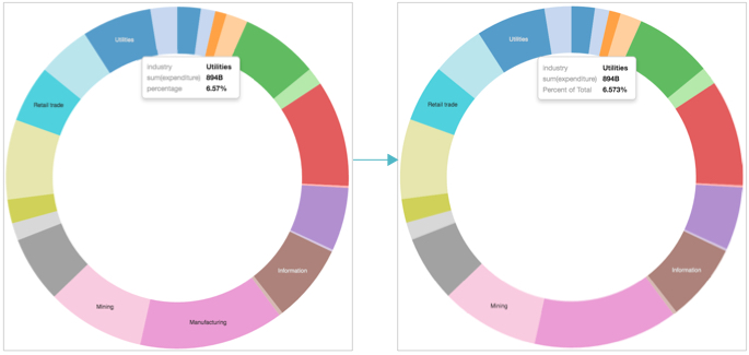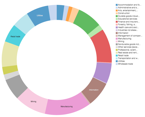 The following steps demonstrate how to create a new Pie visual on the Capital Expenditure by Industry dataset. You must first create this dataset, following the steps described in Creating datasets.