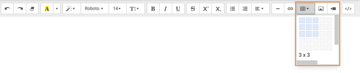 Inserting tables CDP Data Visualization enables you to insert tables in Rich text visuals. In the Rich-Text Editor, click the Table icon and select the number of rows/columns for the new table. The table is automatically added to your visual. Parent topic: Rich texts