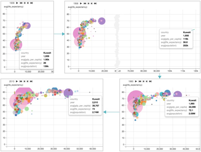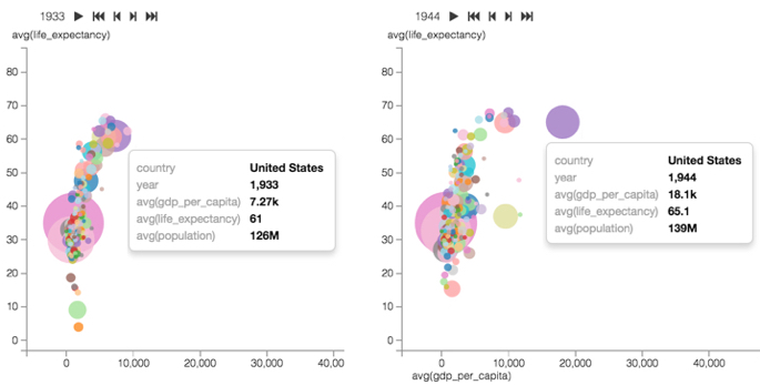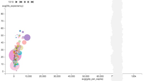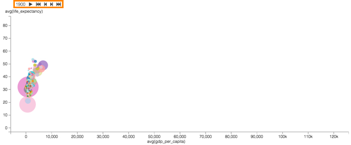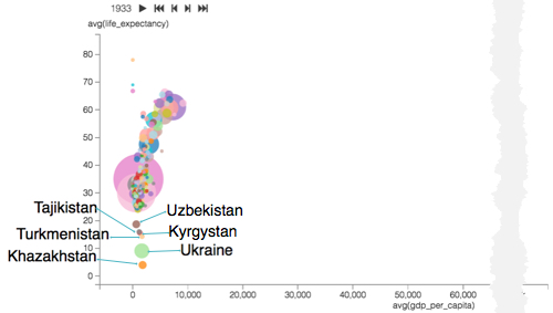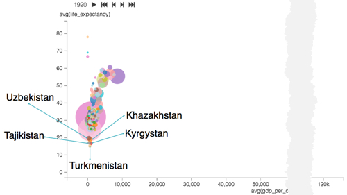 As a next step,you can compare and contrast GDP per capita and life expectancy for different UN Regions in Adding trellises to scatter visuals.