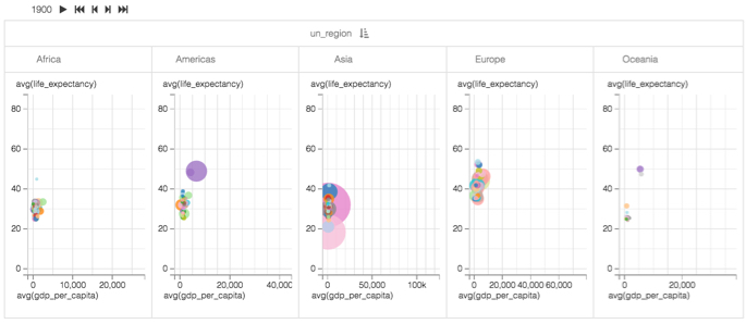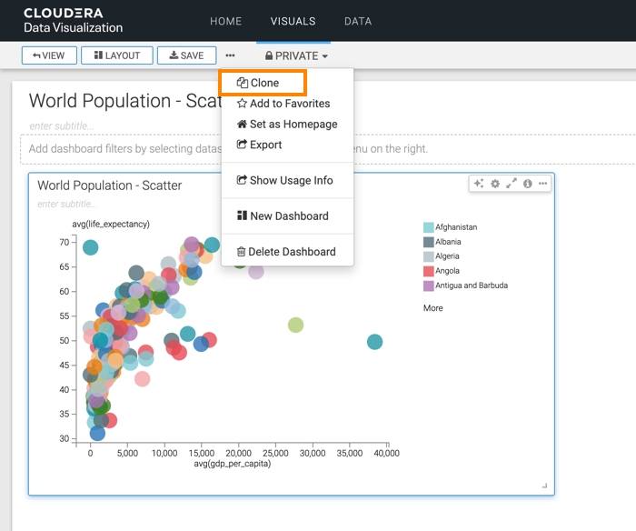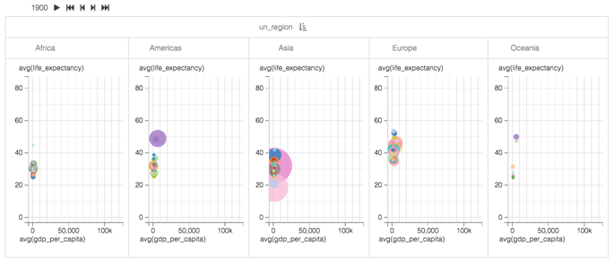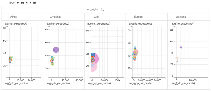The starting point of the following example is the 'World Population - Scatter with Transition' visual developed in Adding transition animation to scatters.