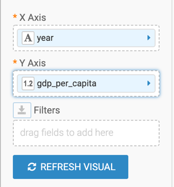 This is necessary because the Sparklines visual type uses aggregated measurements.The Y Axis shelf now contains the modified field