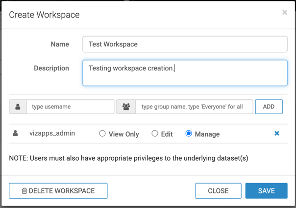 Workspaces may be shared with specific users and user groups to develop and view dashboards that are inherently useful to their line of business. Within each of these workspaces, each user has a defined access level: View Only, Edit, or Manage.