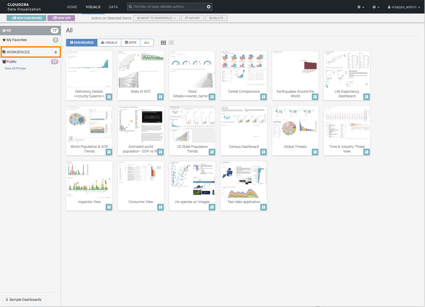 For information about the different types of workspaces, see Workspaces in CDP Data Visualization.