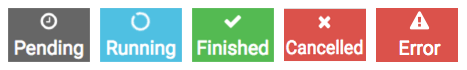 Status, which could be Pending, Running, Finished, Error, or Cancelled.