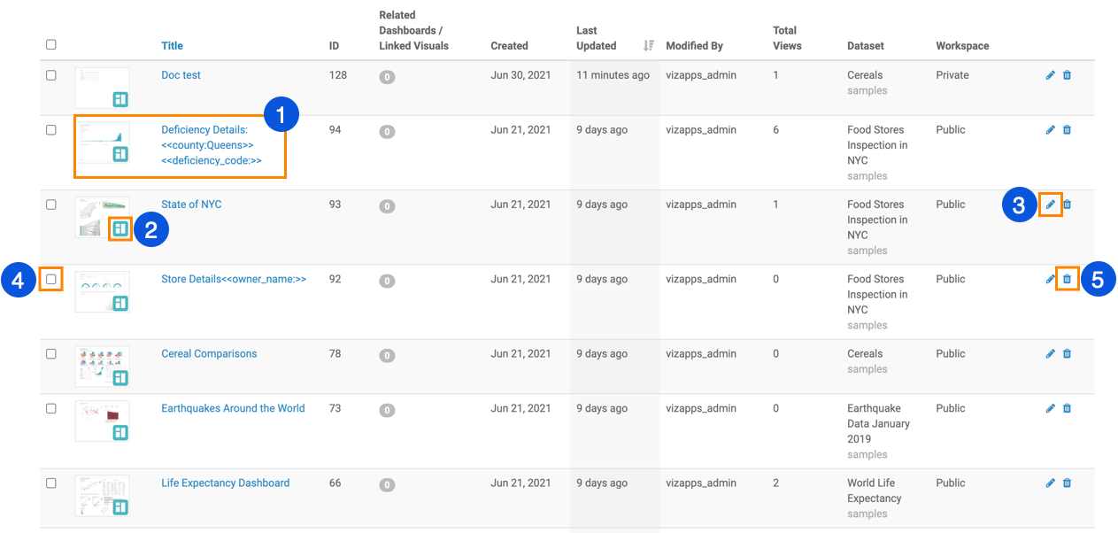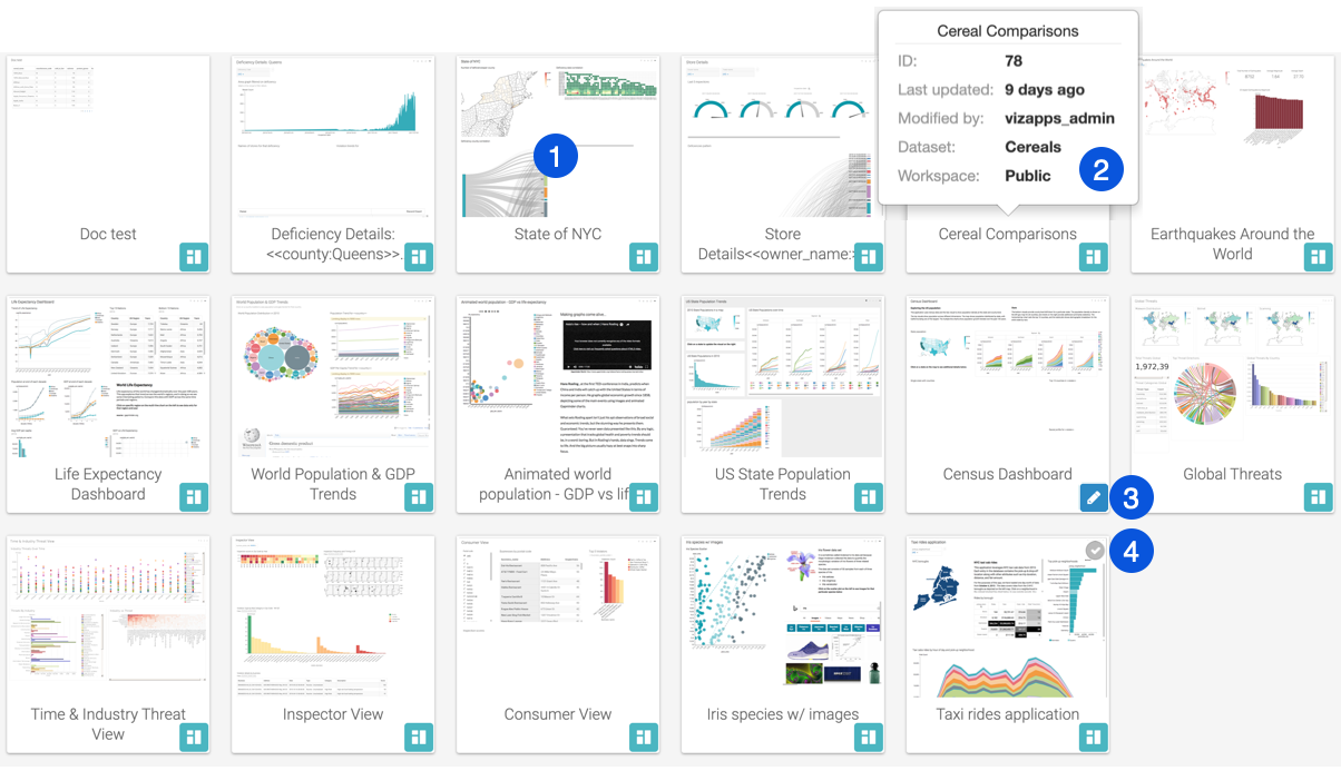 You can also click the (pencil/edit) at the end of the row if you want to edit a visual artifact.