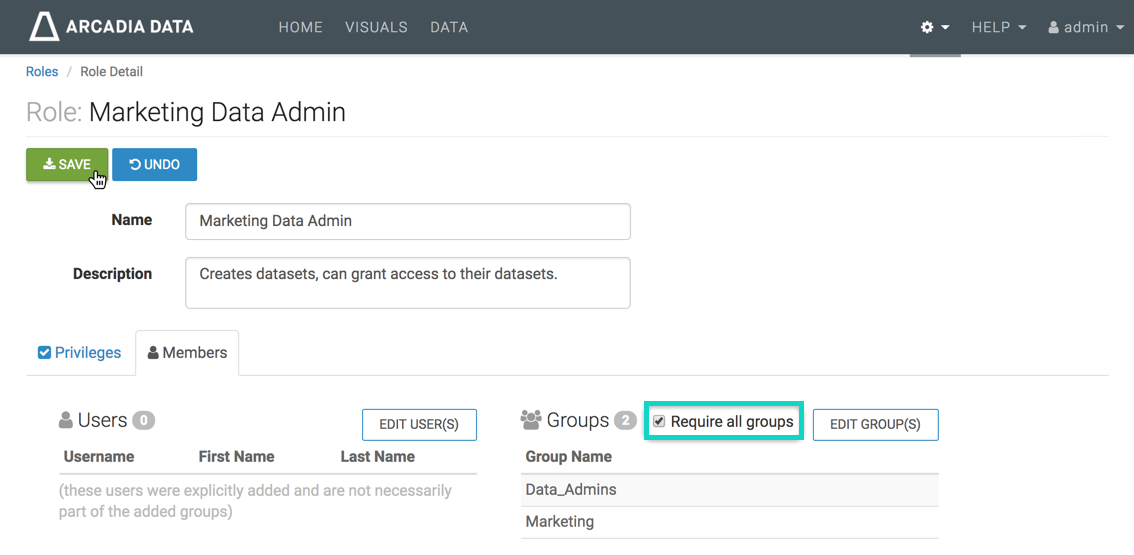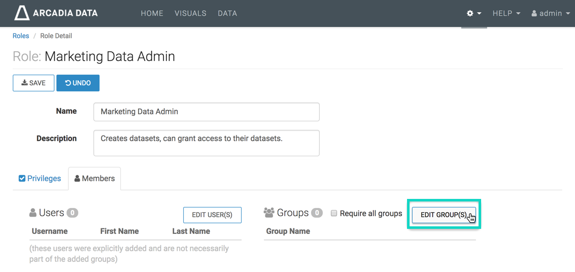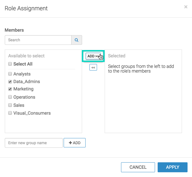 Repeat the previous steps to assign groups to the rest of the roles, according to the