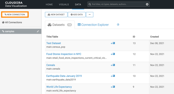 You must connect to your data before you can start using CDP Data Visualization for modeling and visualizing the data. You can define connections to various source systems. Learn how to create a simple data connection.