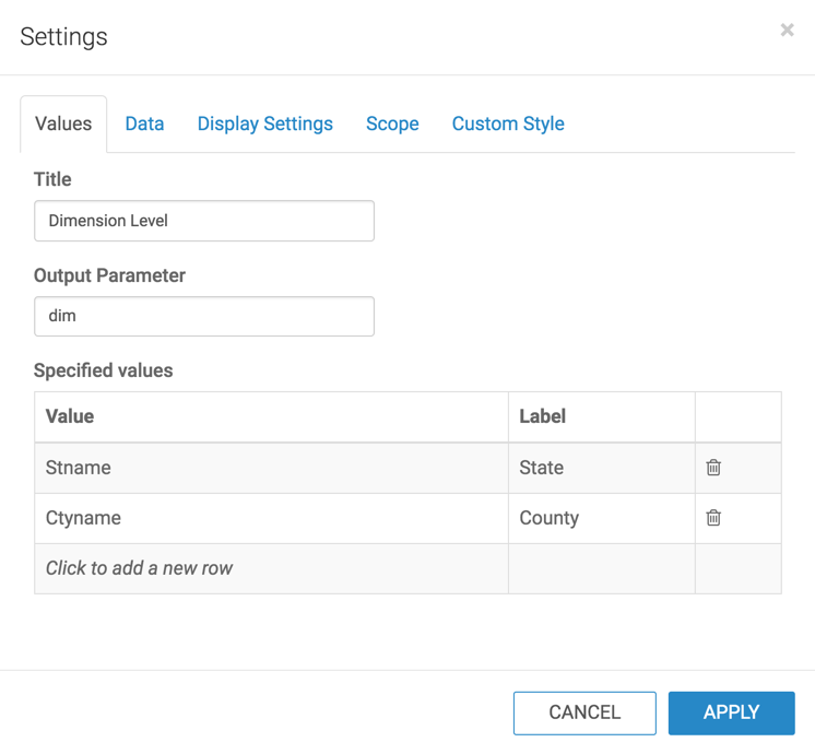 - Under Title, enter Dimension Level.