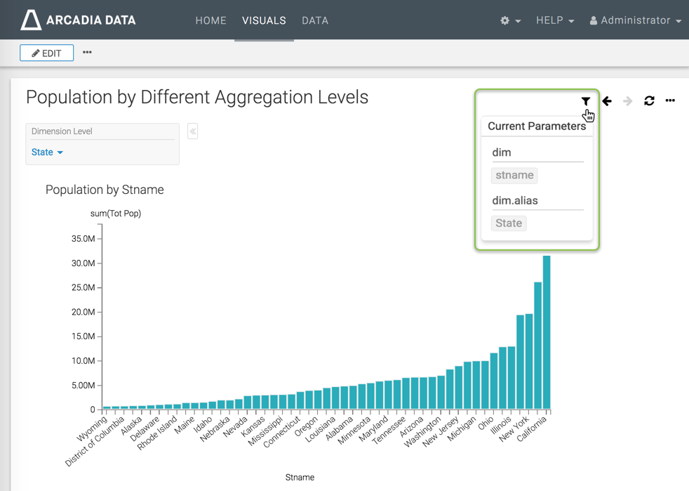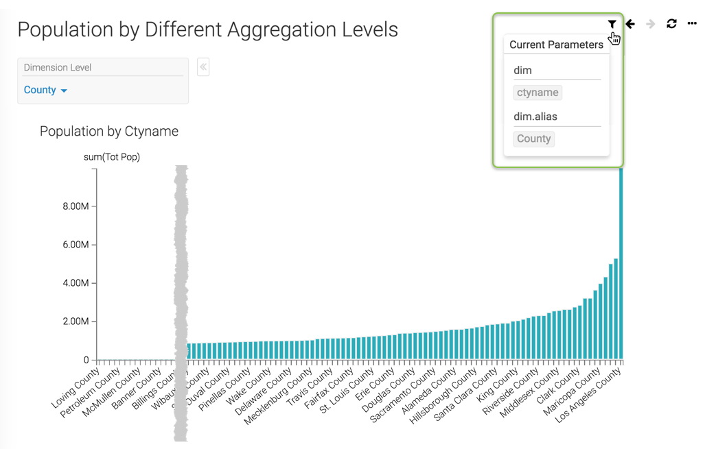 - Name and save the dashboard. We used the name Population by Different Aggregation Levels.