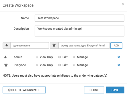 Yes | Yes | Access Control List (ACL) for a workspace |