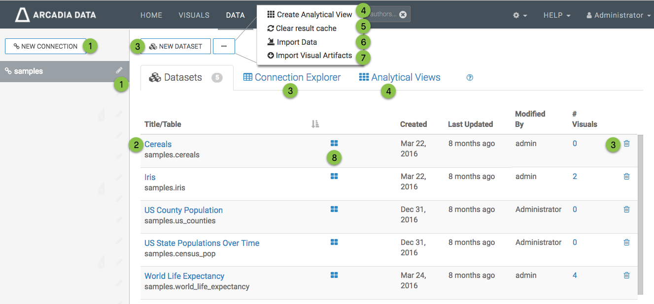 - Connection-level Create datasets, explore tables permission is necessary to see the NEW DATASET button over the list of datasets, the Connection Explorer tab, and the Delete icon on the dataset row.