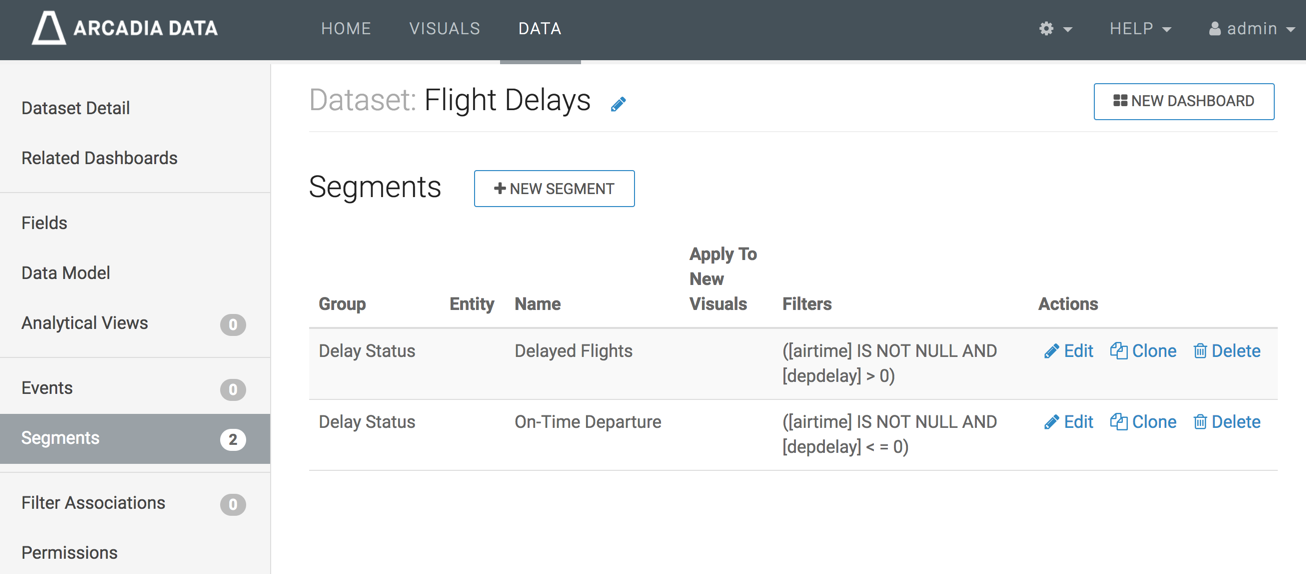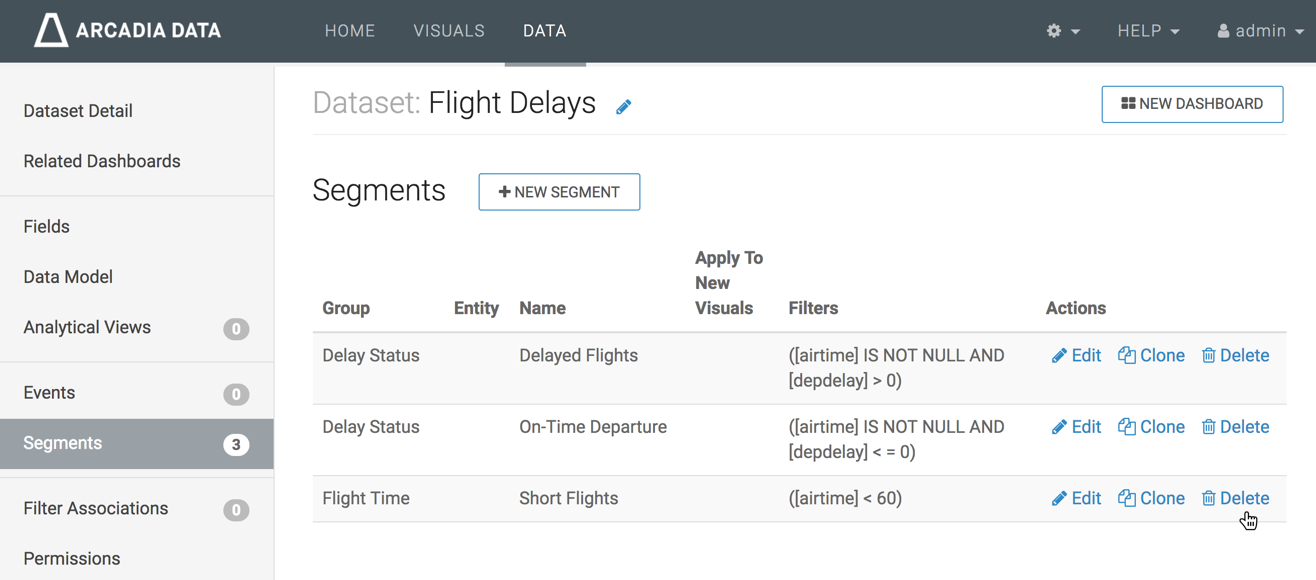 CDP Data Visualization lets you easily delete dataset segment definition.