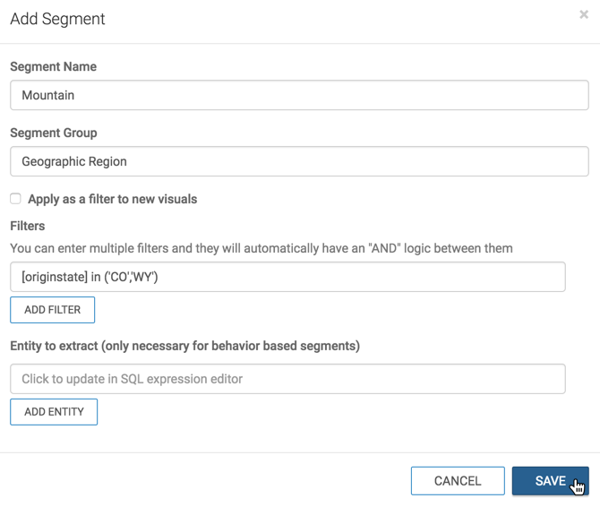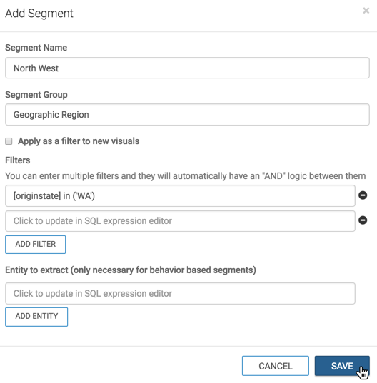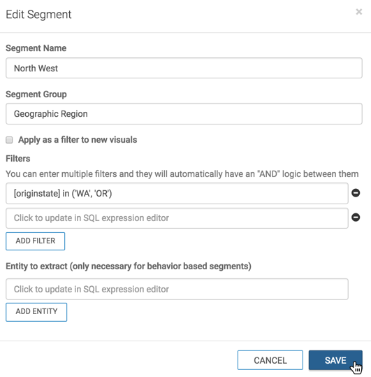 See the following topics to create a new segment from a filter in a visual, then edit the