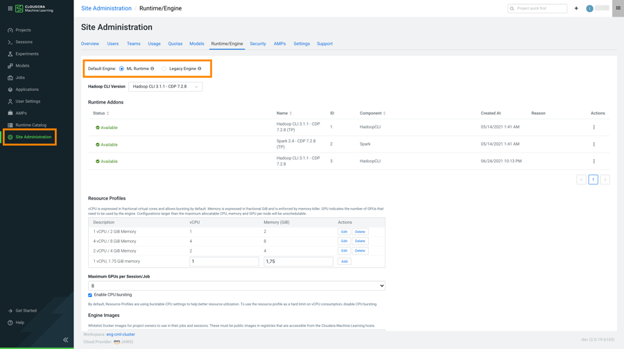 Setting ML runtime as default engine in CML