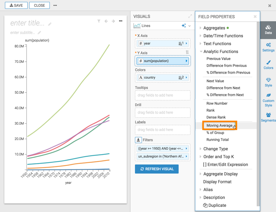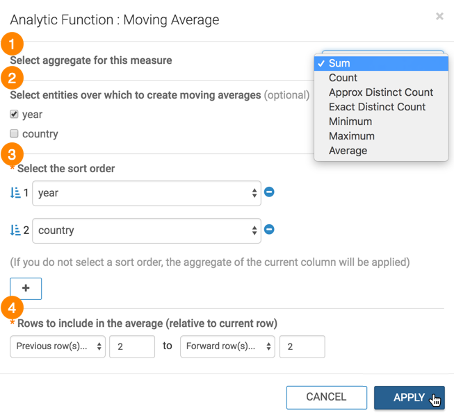 This article describes how to use the Moving Average analytic function in CDP Data Visualization.