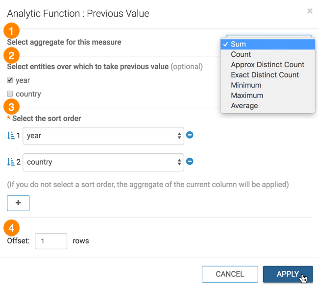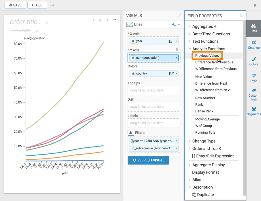 This article describes how to use the Previous Value analytic function in CDP Data Visualization.