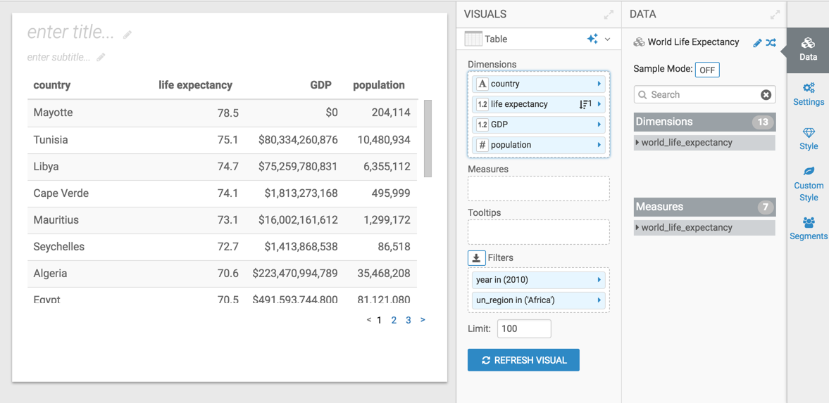 country,life_expectancy,gdp_per_capita, andpopulation. - Filters
