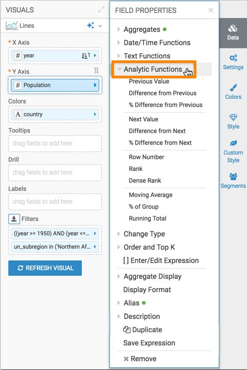 - Open the visual where you want to specify an analytic function, in Edit mode.