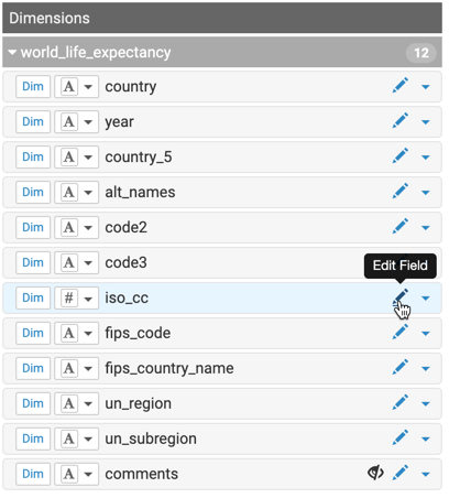 Often, we find it useful to rename a frequently-used field directly in the dataset, instead of using an alias in each visual. CDP Visualization makes it very easy to change the display name of a dataset field.