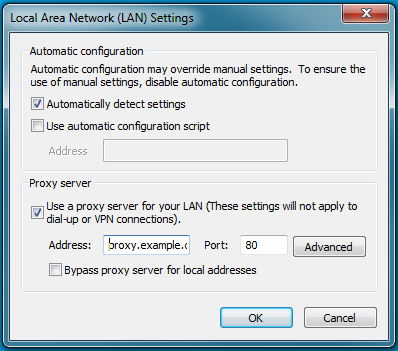 - Click Advanced to open the Proxy Settings dialog box.