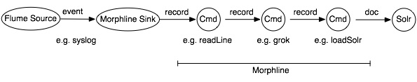 Morphlines can be seen as an evolution of Unix pipelines where the data model is generalized to work with streams of generic records, including arbitrary binary payloads. Morphlines can be embedded into Hadoop components such as Search, Flume, MapReduce, Pig, Hive, and Sqoop.