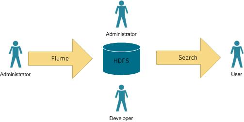 In a typical environment, administrators establish systems for search. For example, HDFS is established to provide storage; Flume or distcp are established for content ingestion. Once administrators establish these services, users can use ingestion technologies such as file copy utilities or Flume sinks.
