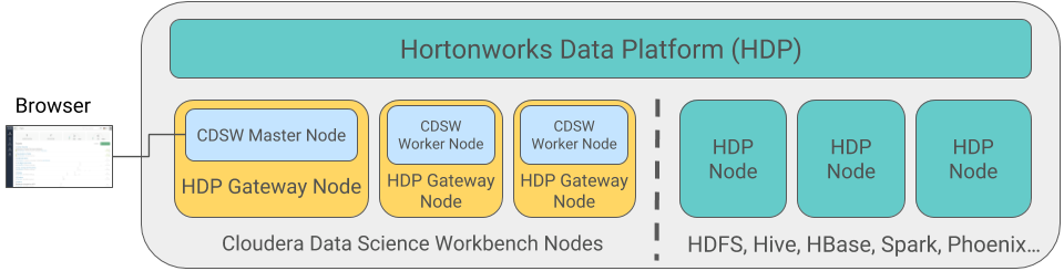 Cloudera Data Science Workbench runs on one or more dedicated gateway / edge hosts on HDP clusters. A gateway host is one that does not have any cluster services running on them. They only run the clients for cluster services (such as the HDFS Client, YARN Client, Spark2 Client and so on). These clients ensure that Cloudera Data Science Workbench has all the libraries and configuration files necessary to securely access the HDP cluster and their respective services.
