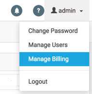 To manage billing IDs for an existing deployment of Cloudera Manager, click Manage Billing on the admin menu in the upper right of the Cloudera Director web UI.