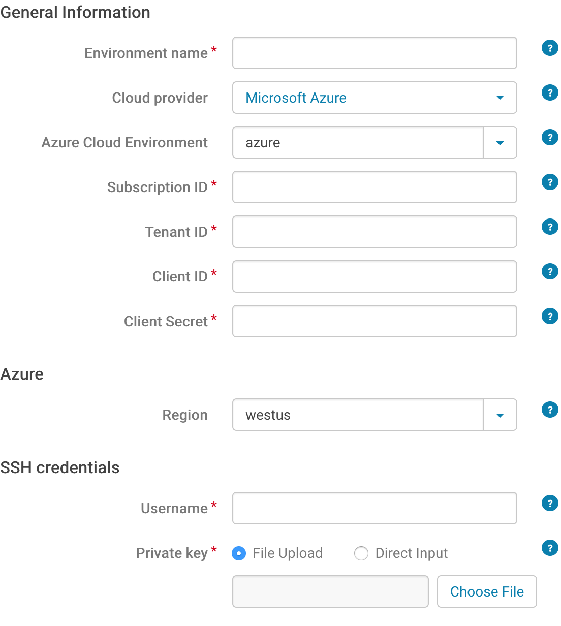 - In the Cloud provider field, select Azure Cloud Platform.